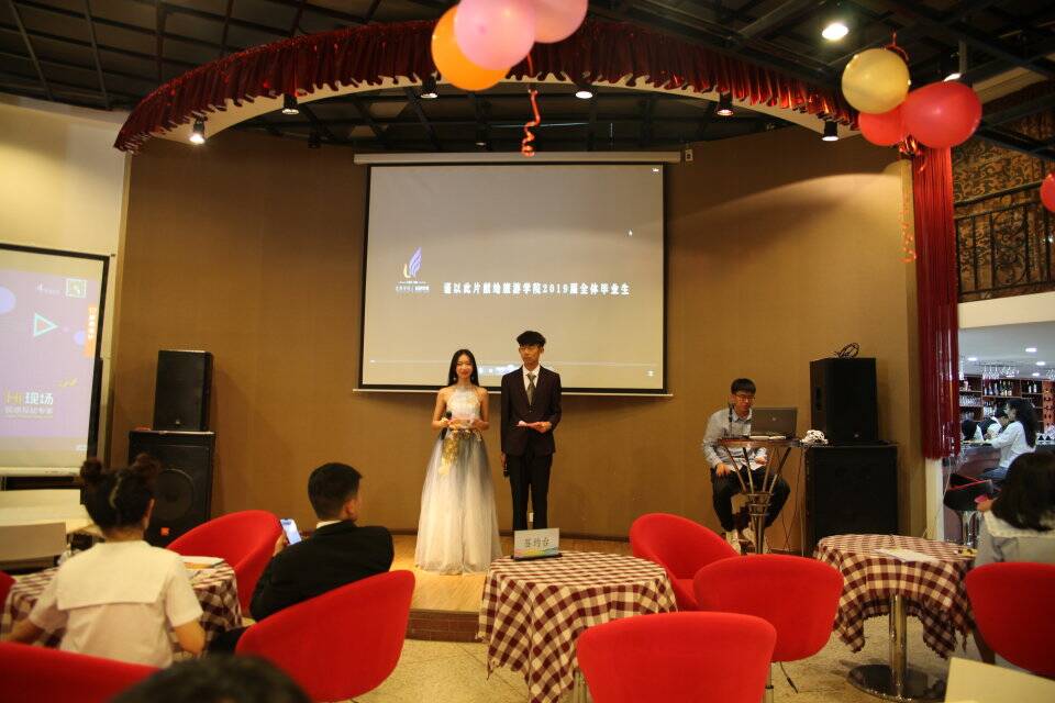 开幕式上,毕业生身着盛装按班级依次走上红毯并在背景墙签名留念。走秀结束后,熊绍宏书记代表公司寄语全体毕业生,勉励同学们走出校园、走向社会后做到不负时代,不负青春。教师代表马少春表达了对同学们的美好祝愿。优秀毕业生代表孙静茹发言,深情表达了对公司对老师的感谢和眷恋。最后,黎素梅董事长宣布酒会开始,毕业酒会在毕业生的尽情欢呼中开幕。酒会上,伴随着“2019毕业季”微电影的循环播放,毕业生们享受着公司精心准备的冷餐,沉醉在大学四年的美好回忆中。
