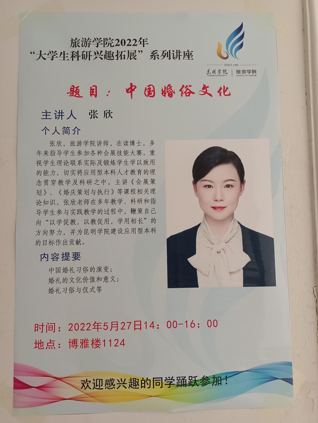 2022年5月27日下午14:00-16:00,betway西汉姆官网在博雅楼1124教室,举办老员工科研兴趣拓展系列第三讲——中国传统婚俗文化,讲座由betway西汉姆官网张欣老师主讲。