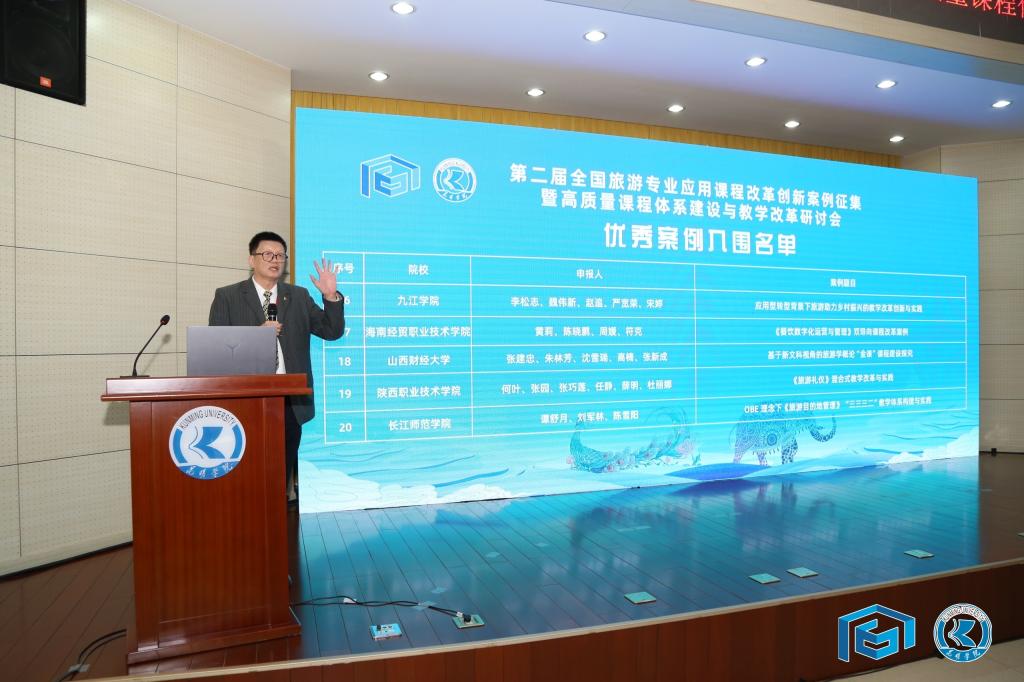 第三环节:优秀案例发布。大会颁发了第一届会议优秀案例入库证明证书,上届大会共有27项优秀案例进入优秀案例库。大会还宣布了第二届全国应用型课程建设优秀案例入围名单,经全国应用型课程建设联盟旅游专业委员会严格评选,共22项案例入围优秀案例。这些优秀案例来自全国不同高校旅游教学一线教师的课程教学与实践,主题包括教学方法改革与模式创新、教学质量保证与创新发展、教学资源建设与示范共享、产教融合与校企协同育人、课程思政改革、混合式教学模式创新、旅游人才教育培养模式与机制变革、课程知识结构创新等诸多方面。