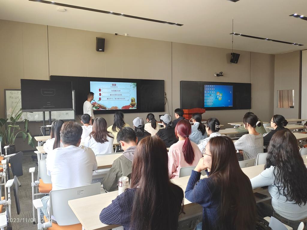 为持续深入学习贯彻习近平新时代中国特色社会主义思想和党的二十大精神,加强廉政文化建设,全面推进“清廉校园”建设,按照《betway西汉姆官网办公室关于组织开展2023年廉政主题党日活动的通知》要求,betway西汉姆官网三个员工党支部先后于10月20日、10月25日、11月1日开展2023年廉政主题党日活动,围绕员工尚廉,分别由支部书记金刚、纪检委员李自菊和代帝为所在支部党员上廉政专题党课。员工第一党支部纪检委员代帝以“廉洁学习 做新时代合格员工党员”为题,从“党的廉洁纪律”“廉洁纪律的重要性”“廉洁学习 做合格员工党员”三个方面,教育引导支部党员守规矩、倡廉洁、扬正气。