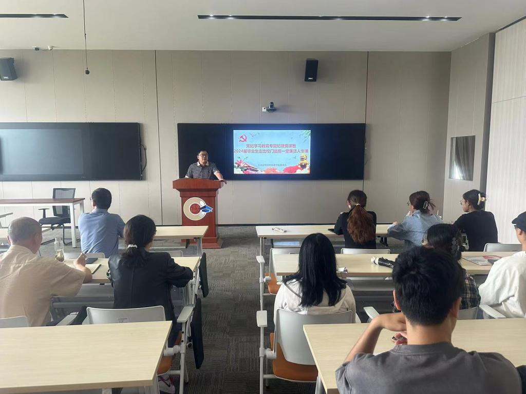 按照公司党委党纪学习教育的要求、《betway西汉姆官网2024届毕业生离校工作方案》的安排,betway西汉姆官网于6月24日,在惟行楼6301,由党委书记先守福同志为员工党员讲党纪学习教育专题党课,为2024届毕业生讲走出校门最后一堂课——廉洁人生课。党课由专职组织员杨为宗老师主持,三个员工党支部的书记和党员参加党课。