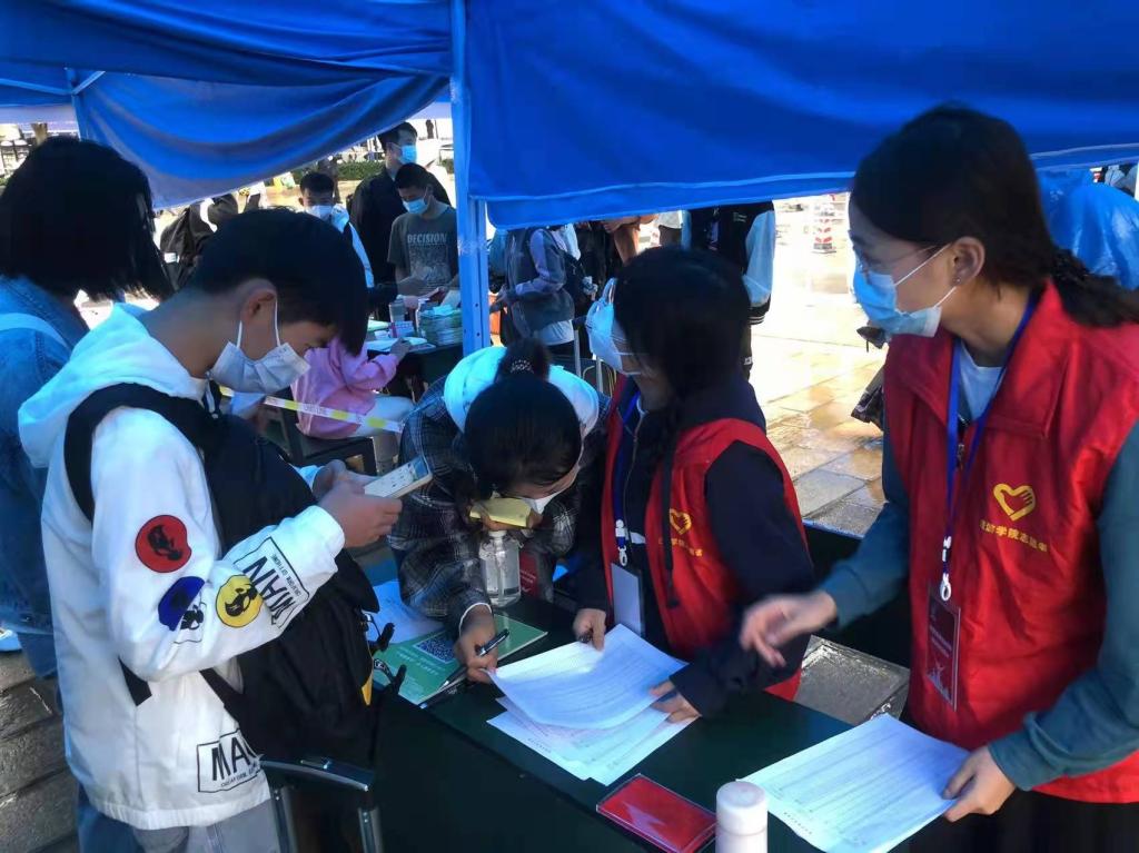 新生持录取通知书、健康绿码、行程码、《个人14天健康登记表》及48小时内核酸检测阴性报告经过体温测量和核酸检测后经专用通道进入校园。