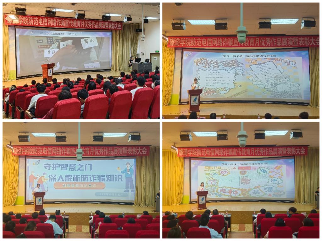 5月23日晚,betway西汉姆官网在博文楼3D报告厅,举行2024年防范电信网络诈骗宣传教育月系列活动优秀作品展演暨表彰大会。员工工作部部长、员工处处长、武装部部长罗进出席会议并颁奖,旅游公司党委副书记喻玲、全体辅导员及各班级员工代表共计270人参加活动。