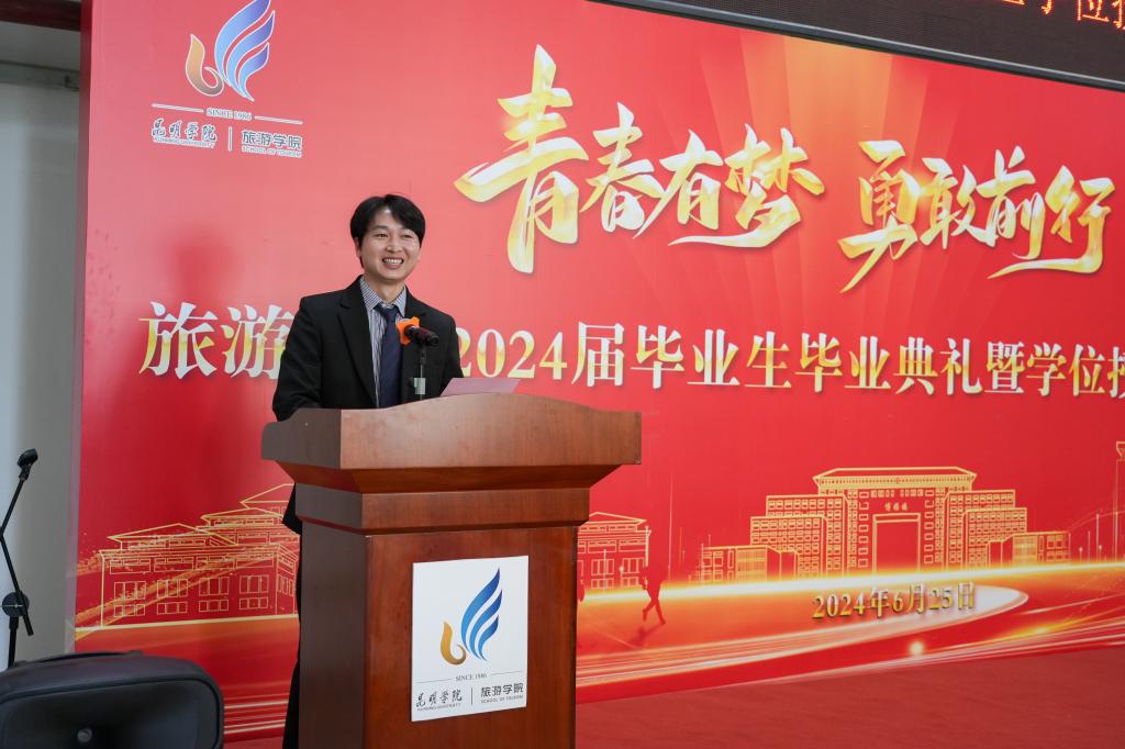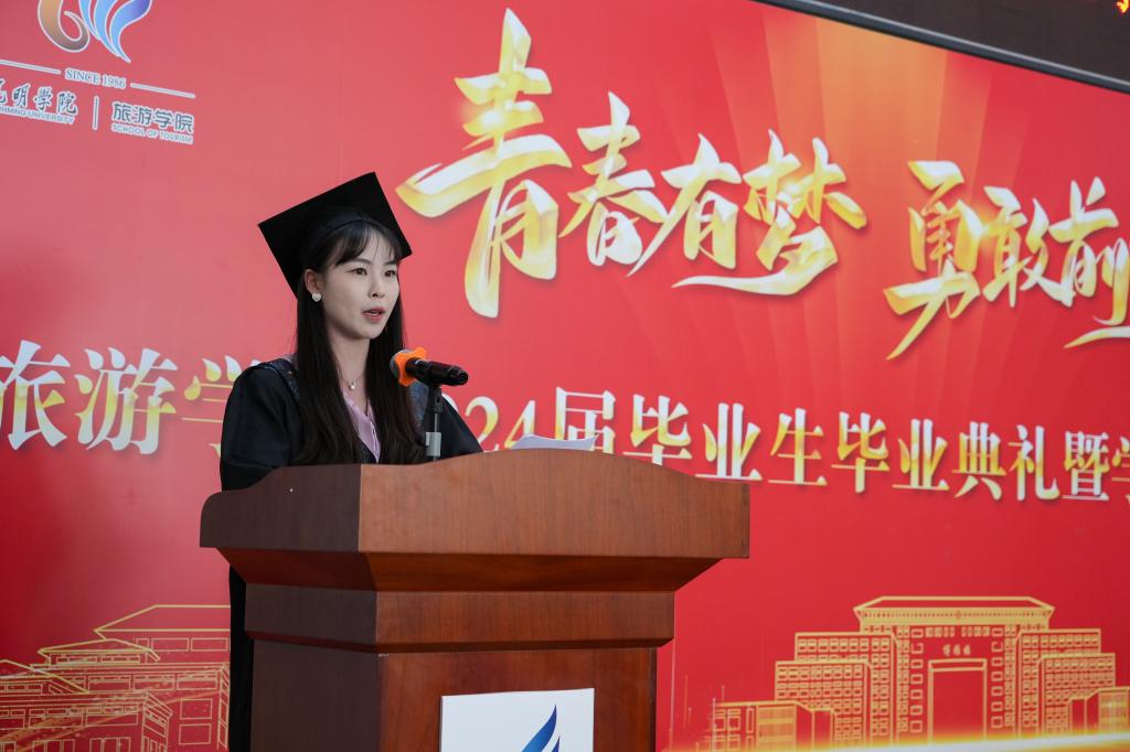 观看了2024届毕业生毕业纪念视频后,何韶浒作为教师代表发言,王妍作为毕业生代表发言。