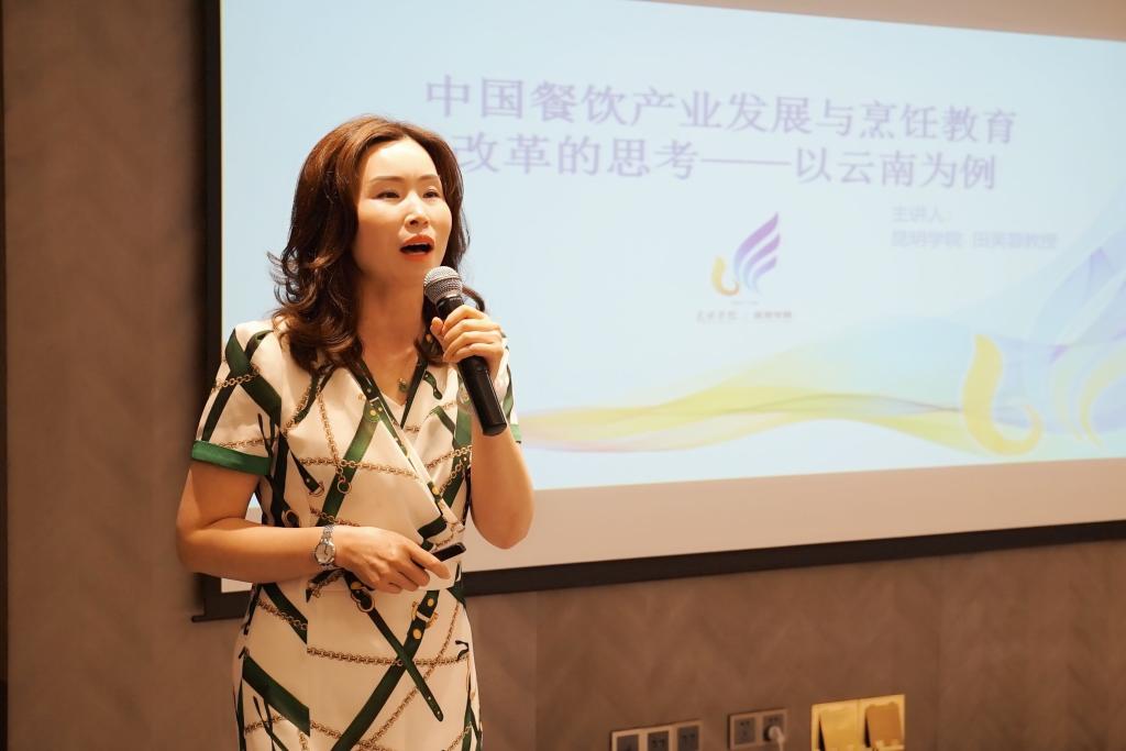 本次学术年会大咖云集,来自美国内华达大学的BillyBai教授、荷兰斯坦登运用科学大学Conrad lashley教授、华南理工大李力教授、海南大学谢彦君教授、中山大学王宁教授、曾国军教授等国内外知名学者都受邀参加主旨演讲。betway西汉姆官网的田芙蓉经理也受邀率队参会并发表重要专题演讲《中国餐饮产业发展与烹饪教育改革的思考》,观点鲜明的阐明了当前中国餐饮产业发展过程中存在的问题不足和将来的发展趋势,以betway西汉姆官网为例强调了烹饪专业教育创新改革的必要性,并交流了betway西汉姆官网烹饪教育改革的重要实践经验,受到多方关注和好评。同行的酒店管理教研室主任马英老师发表了论文演讲《款待研究视角下酒店管理专业创新改革的探讨——以betway西汉姆官网酒店管理专业为例》,交流了酒店管理专业人才培养方案的创新设计;青年骨干教师张超旋也就《款待业发展背景下的国际品牌酒店管理者感召力研究——以万豪国际酒店为例》进行了论文演讲。