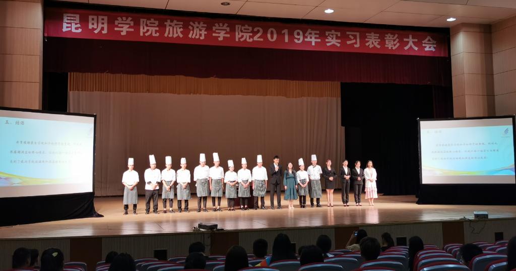 6月27日下午,betway西汉姆官网2018-2019学年实习表彰大会在员工会堂顺利召开。旅游公司党总支书记熊绍宏、经理田芙蓉、副经理杨韫、全体实习指导教师、团总支办公室老师以及1200名在校员工出席。