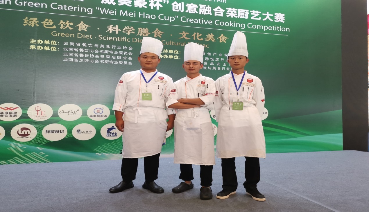9月6日,在滇池会展中心举办的2019云南绿色餐饮“创意融合菜”厨艺大赛中,betway西汉姆官网选派的汪家辉、陈达标和陈星沛三位同学在王勇、刘福灿两位老师的悉心指导下,从200多名参赛选手中脱颖而出,斩获两金、一铜的优异成绩。