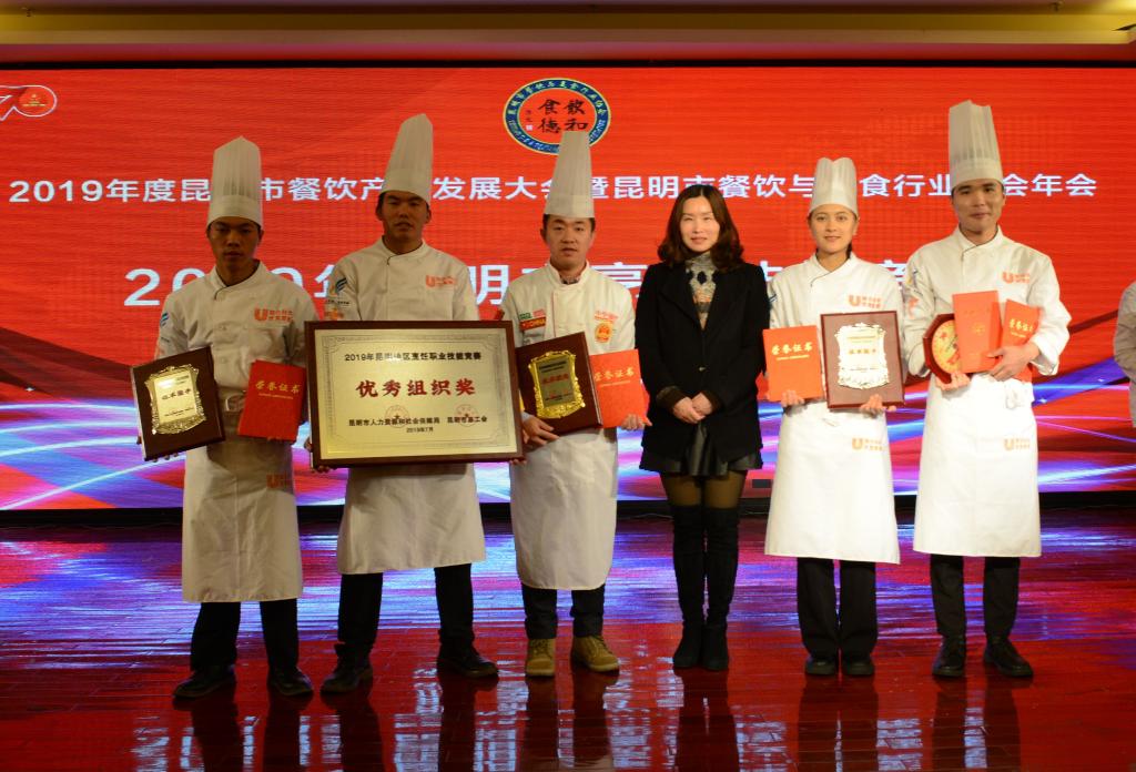 2019年昆明地区滇菜烹饪职业技能竞赛于12月3日在昆明国际会展中心3楼钻石厅举行颁奖仪式,betway西汉姆官网代表队表现优异,喜获佳绩。