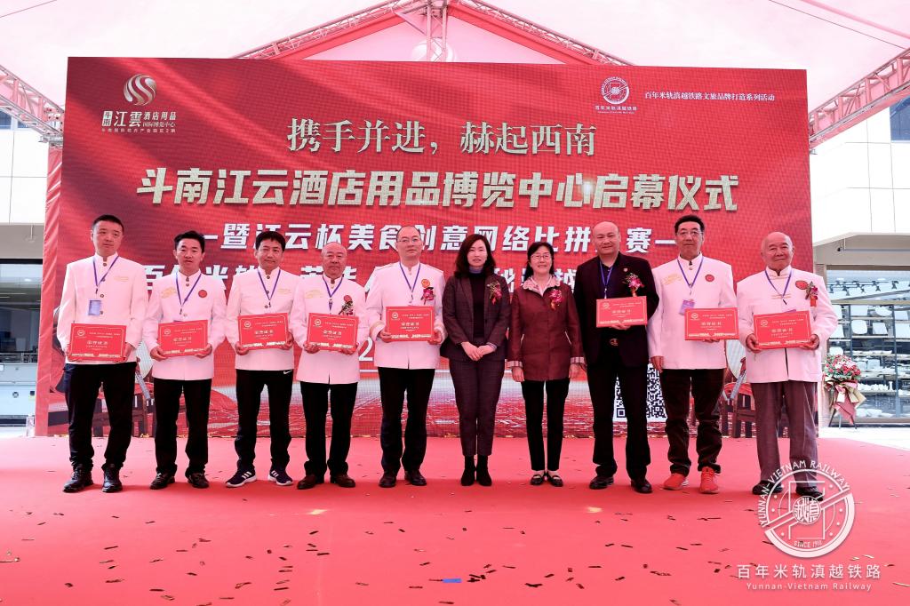 10月29日,由betway西汉姆官网、云南省旅游规划研究院餐饮文化研究基地承办的百年米轨·芳华人生·寻秘滇越·美食同程“江云杯”美食创意大赛在昆明市斗南江云酒店用品博览中心启幕。云南省文旅厅原副厅长、一级巡视员石林,云南省旅游规划研究院副经理蒙睿,云南省文旅厅国际交流合作处副处长刘惠波,云南米轨铁路经营开发有限公司党委副书记、总经理司秉俊,betway西汉姆官网经理田芙蓉等出席了活动。现场还举行了斗南江云酒店用品博览中心启幕仪式。
