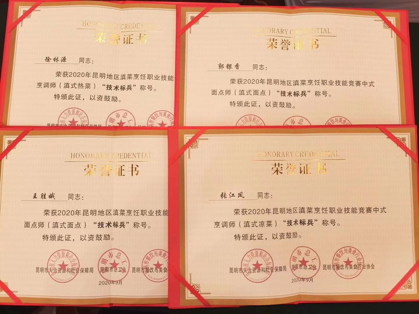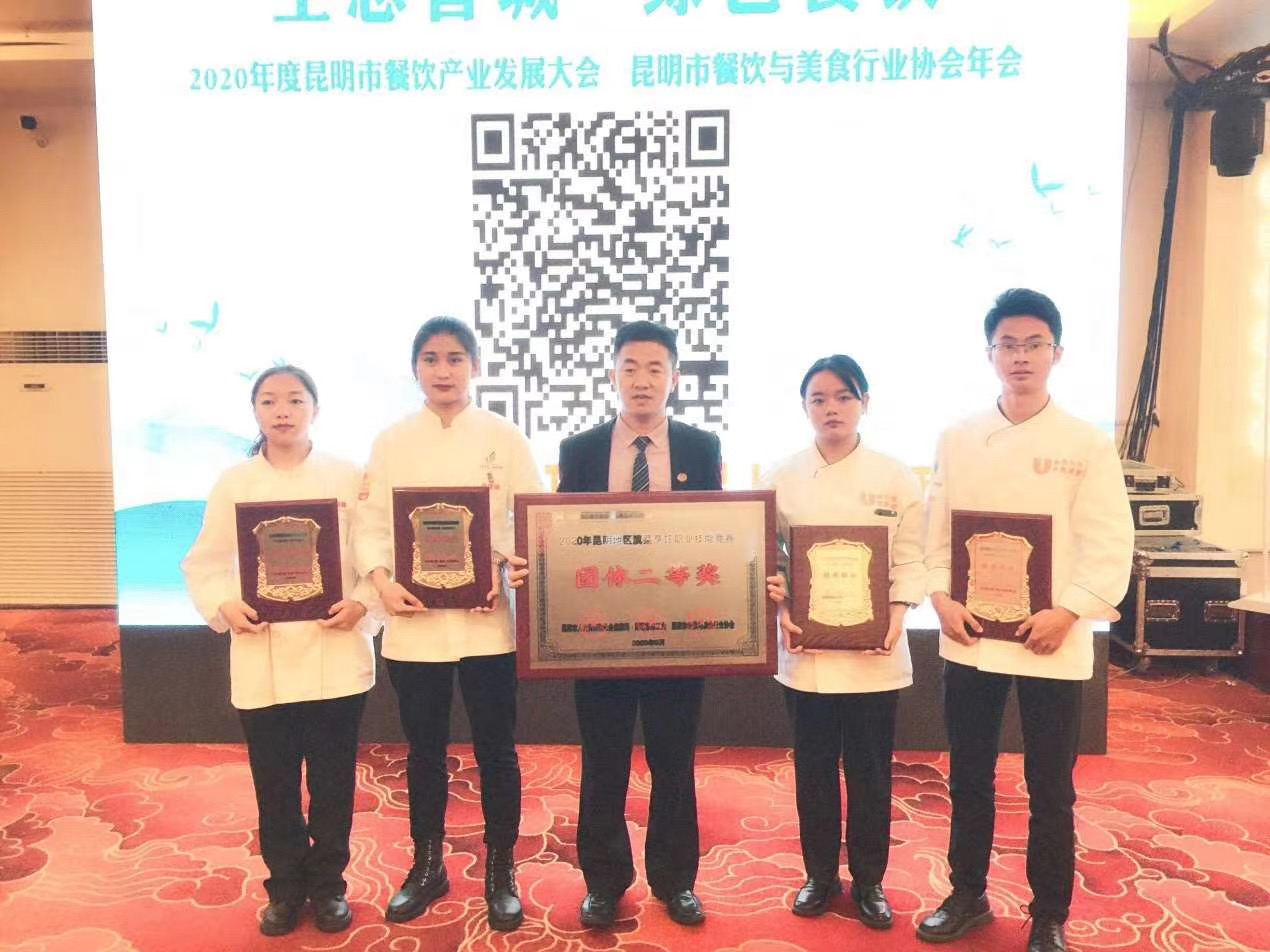 betway西汉姆官网委派引进人才刘福灿大师组织员工集训、组建代表队并指导师生参赛。与各酒店工作经验很丰富的参赛代表同台竞技,游公司代表队表现优异,不负厚望,取得优异成绩,喜获佳绩。 betway西汉姆官网荣获昆明市人力资源和社会保障局与昆明市总工会颁发的二等奖奖牌及证书;参赛选手共获奖牌5枚,荣誉证书5份,其中徐林源、张江凤、郭银香、王胜俄同学分别荣获技术标兵及1000元现金奖励。