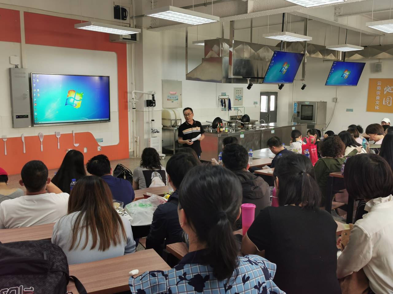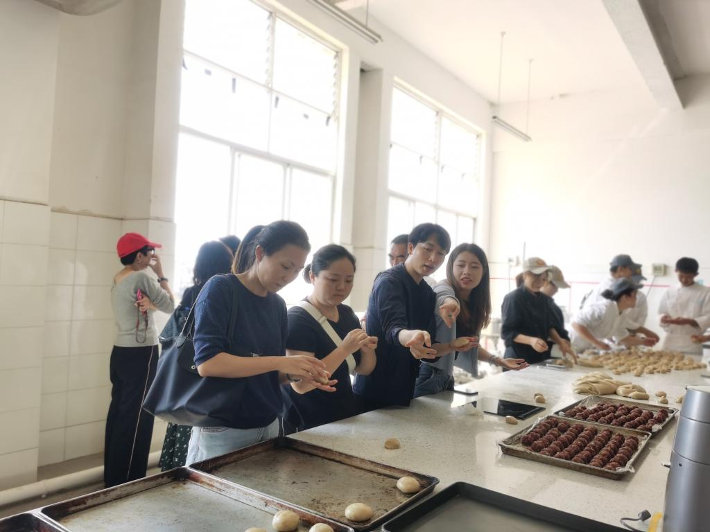 活动开始前,首先旅游公司党委书记王建华向全体教职工表达了节日祝福,带领全体教职工认真学习了习近平总书记“七一”重要讲话精神,结合身边事教育身边人的主题,教育引导广大教师崇德修身、潜心 教书育人。在学习结束后,全体教职工前往烹饪实训大楼,由烹饪专业特聘教师徐伟大师讲授滇八件之一的云腿月饼制作材料、过程,并亲自示范,带领全体教职工制作云腿月饼。在一片欢声笑语中,本次教师节庆祝活动划上了圆满的句号。