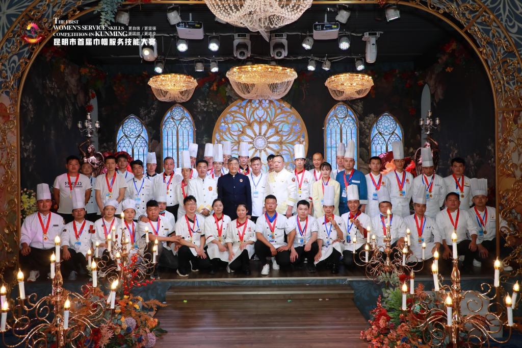 大赛颁奖典礼在云纺玺尊龙婚礼酒店隆重举行,清华大学公共管理公司跨界研究中心专委马竣龄,中国顶级烹饪大师、中国元老级注册烹饪大师王黔生,中国元老级烹饪大师蒋彪,中国资深烹饪大师、云南省婚庆行业协会高级专家顾问关明,中国滇菜大师刘福灿,云南省总工会兼职副主席蒋秋香等领导和专家,以及来自昆明、玉溪、曲靖等地的企业和团队、参赛选手和评判员共600多人参加典礼。