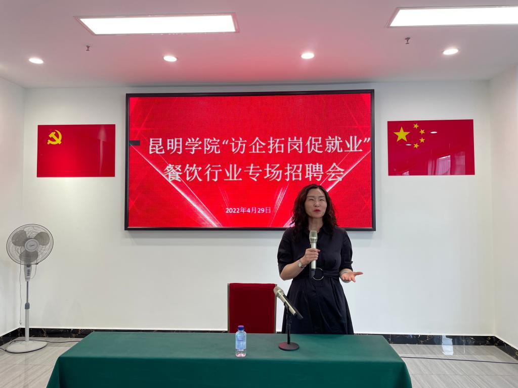 为进一步促进毕业生就业,将校领导“访企拓岗”行动落到实处,紧密联系毕业生需求,betway西汉姆官网通过云南省餐饮与美食协会(以下简称“餐美协会”),联系协会四家会员企业,于2022年4月29日在餐美协会举办betway西汉姆官网“访企拓岗促就业”餐饮行业专场招聘会。云南省餐饮与美食行业协会监事会监事长刘欣、betway西汉姆官网经理田芙蓉、云南省餐饮与美食行业协会副秘书长郗文娟等出席招聘会,共有四家企业人事代表、betway西汉姆官网负责就业工作的教师及部分毕业班班主任、betway西汉姆官网30余名2022届毕业生参加招聘会。