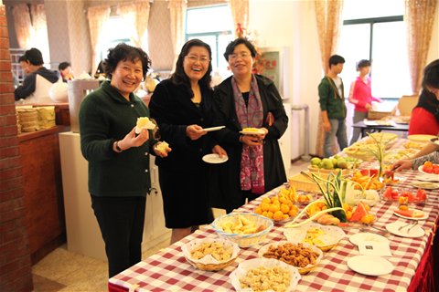 在冷餐酒会上,公司领导们向全体女教职工致以节日的问候,肯定了全体女教师在公司的发展中的贡献。随后,冷餐会开始了,老师们边用餐,边交流,谈工作,谈家庭,气氛一片温馨融洽。