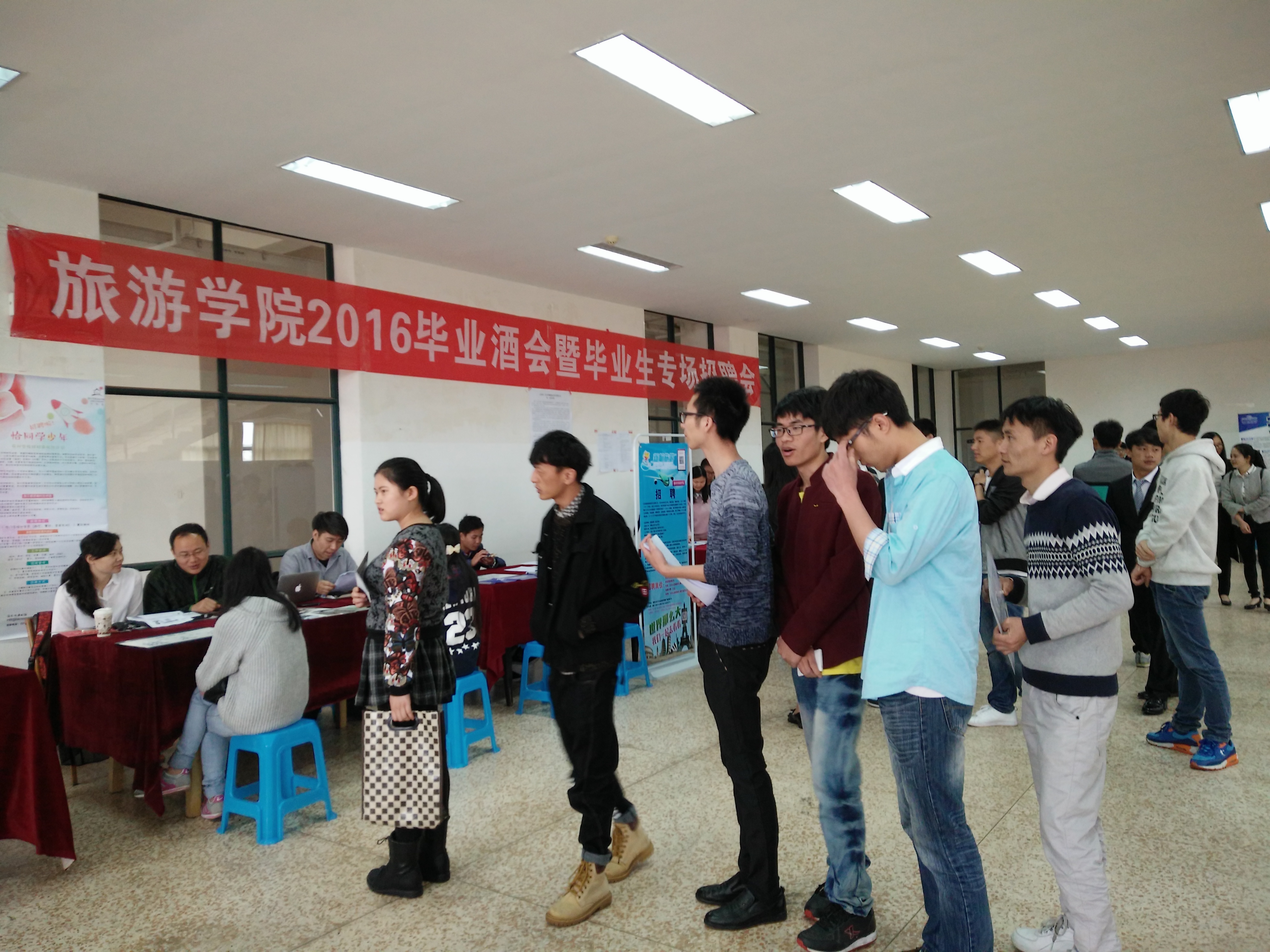 尽管一夜暴雨,5月24日不到9点,同学们和用人单位冒雨来到公司精心布置的招聘活动现场,本次进场招聘的企业有长期合作的昆明洲际酒店、花间堂酒店总部、昆明索菲特大酒店、石林银瑞林国际大酒店有限责任公司及多家旅行社,共30家企业,提供约200个岗位。