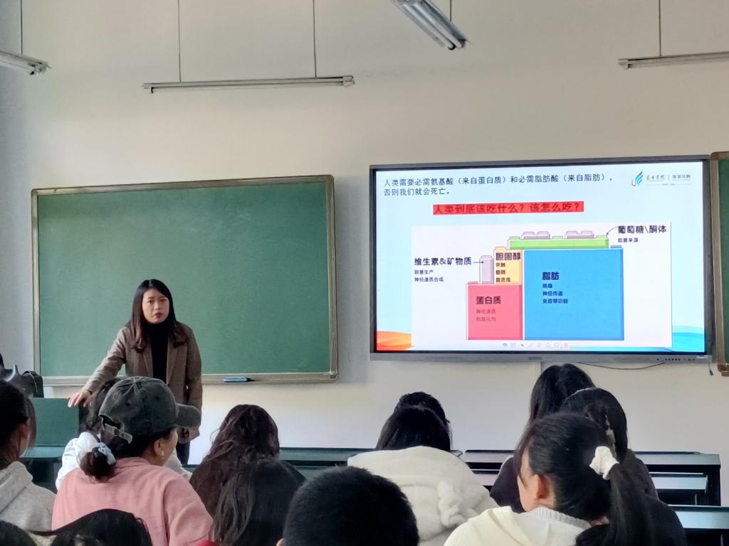 伍欣老师简洁概括的讲解和丰富生动的图片,让同学们了解膳食结构对体重的影响,给减肥困扰的同学提出科学有用的建议。