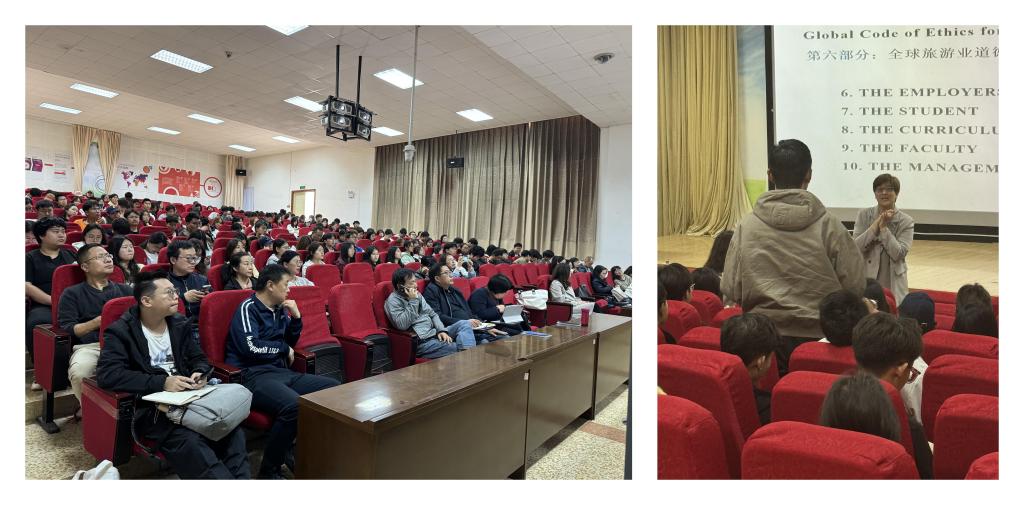 为推进旅游伦理教育,betway西汉姆官网(以下简称公司)于2025年5月27日在3D实验室,举办“全球旅游伦理规范”主题讲座。讲座邀请宁波大学热昂大学联合公司旅游系副主任谢慧孜担任主讲嘉宾,公司经理田芙蓉教授主持讲座,公司100多名师生参加讲座。